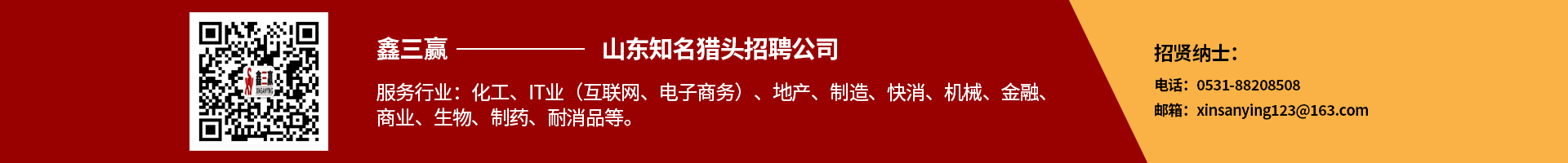 鑫三贏獵頭招聘公司(0531-88208508)是山東本土的知名專業獵頭招聘公司,幫助企業解決中高端招聘難題 ,免費幫助人才推薦更好的工作機會。公司總部位于山東省省會濟南市。我們致力服務于山東省內大中型內外資企業,我們通過對客戶企業的組織結構、相關業務和具體職位的研究、分析,能夠很好的與企業及候選人進行溝通,滿足不同企業對不同種類高級人才的需求,我們的人才儲備來自全國各地(包括和港澳臺同行業合作人才渠道)。我們與多家世界500強、山東知名企業保持著長期獵頭服務戰略合作關系,在山東獵頭業界享有良好的聲譽和口碑。